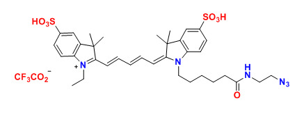 各種花青5(Cy5)染料已用于標記生物分子,用于熒光成像和其他基于熒光的生化分析。它們廣泛用于標記肽,蛋白質(zhì)和寡核苷酸等。Cy5 染料是最常見的紅色熒光團中的一種。這些多功能熒光團可以耐受3-10的pH范圍,用于生物相關(guān)pH的各種應用。該染料還具有DMSO耐受性和光穩(wěn)定性,能夠在不損失性能的情況下從儲存轉(zhuǎn)移至分析。水溶性消除了在測定緩沖液中對有機溶劑的需要。我們的Cy5染料經(jīng)過全面QC測試,可確保高水平的發(fā)色團和活性染料含量。單活性染料適用于蛋白質(zhì)和寡核苷酸的靶向,精確標記,雙活性染料更適合于一般標記。建議使用NHS酯染料標記胺基,建議使用馬來酰亞胺染料標記硫醇基團。該Cy5 疊氮化物選擇性地與炔基反應。